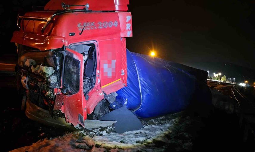 Yaralanmanın olmadığı bu kaza, tırın kaldırılmasının ardından trafik akışının normale dönmesiyle sona erdi.