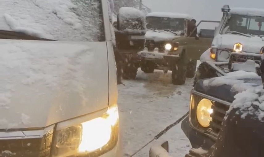 Düzce'de kar safarisi yapmak için yola çıkan Düzce Safari Offroad Kulübü üyeleri, Samandere Şelalesi mevkiinde karşılaştıkları bir olayla gündeme geldi.