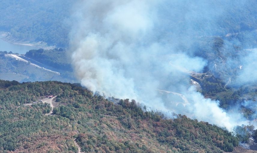 Düzce'nin Yığılca ilçesinde çıkan orman yangını söndürülmeye çalışılıyor.