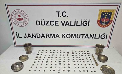 Düzce – Düzce İl Jandarma Komutanlığı, Kaçakçılık ve Organize Suçlarla Mücadele (KOM) ekipleri tarafından gerçekleştirilen bir operasyonda, Roma ve Bizans dönemlerine ait 143 parça tarihi eser ele geçirildi.
