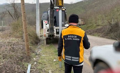 DÜZCE İL ÖZEL İDARESİ YOL VE ULAŞIM HİZMETLERİ MÜDÜRLÜĞÜ EKİPLERİ TARAFINDAN, DOKUZDEĞİRMEN, HARMANKAYA VE BÜYÜKMELEN KÖYLERİNİ KAPSAYAN GRUP YOLUNDA ULAŞIM GÜVENLİĞİNİ ARTIRMAYA YÖNELİK TABELANDIRMA ÇALIŞMALARI GERÇEKLEŞTİRİLDİ.