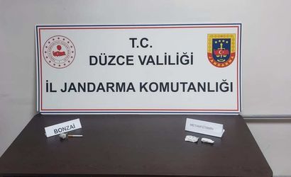 Aracın kaput kısmındaki havalandırma menfezine yapılan incelemede, 6 gram metamfetamin ve 6 gram bonzai ele geçirildi. Düzce'ye uyuşturucu madde getirdiği ve satacağı tespit edilen F.K., adli mercilerce tutuklandı.