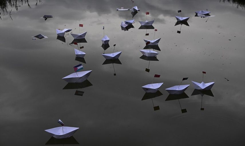 Düzce'de öğrenciler, Gazze'ye insani yardım ulaştırmak için yola çıkan ve İsrail'in saldırısına uğrayan Küresel Sumud Filosu'na destek için kağıttan yaptıkları gemileri suya bıraktı.