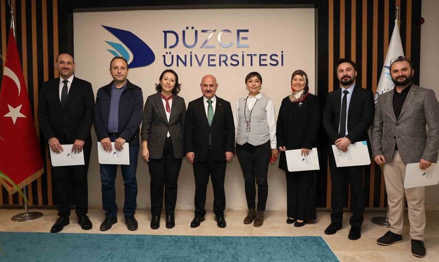 Rektör Prof. Dr. Nedim Sözbir, ödül kazanan öğretim üyelerini tebrik ederek, Düzce Üniversitesi’ne yaptıkları değerli katkılardan dolayı teşekkür etti. Ayrıca, öğretim üyelerinin, üniversitenin başarı sıralamalarındaki yükselişine sağladıkları katkılara dikkat çekerek, başarılarının devamını diledi.