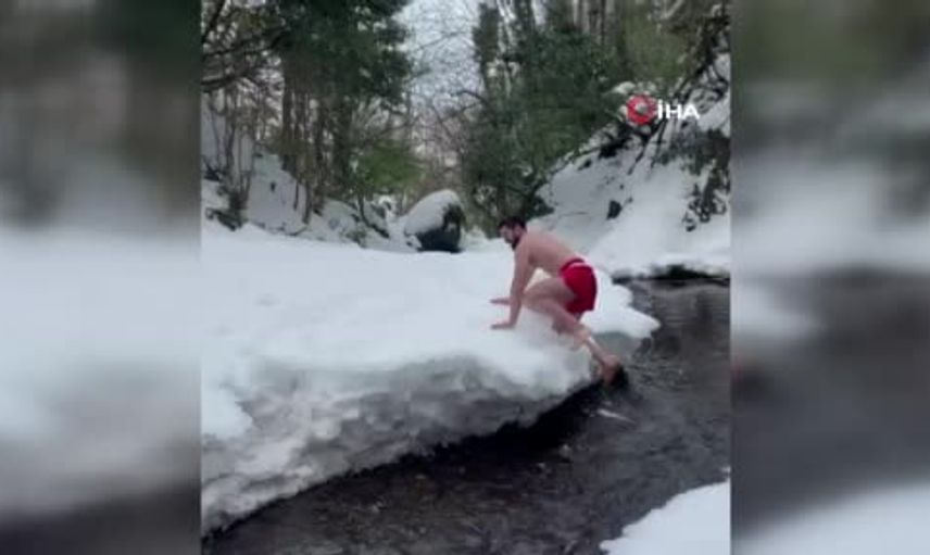 Düzce’de etkili olan kar yağışının tadını çıkaran Bişgin, Aydınpınar Şelalesi Tabiat Parkı'na giderek, karda yürüyüş yaptı ve buz gibi şelale altında antrenman gerçekleştirerek dikkatleri üzerine çekti.