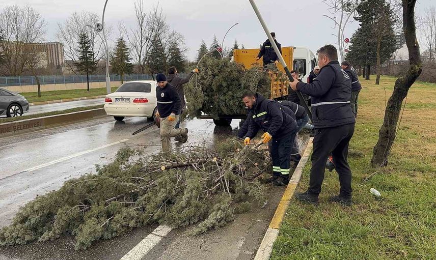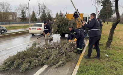 Bunun yanı sıra, fırtına esnasında bir başka ağaç, gövdesinden kırılarak yola devrildi. Belediye ekipleri, devrilen ağaçları keserek yoldan kaldırma çalışmalarına başladı.