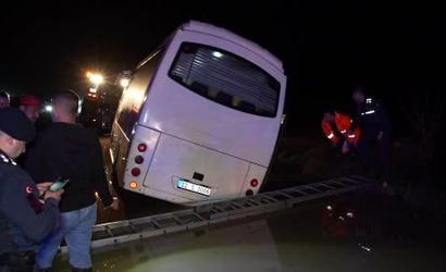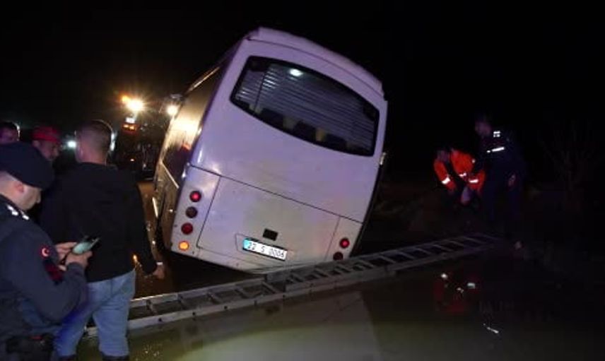 Edirne'nin Havsa ilçesinde meydana gelen olayda, şiddetli yağış sonrası kontrolden çıkan bir minibüs, yol kenarındaki sulama kanalına düştü.