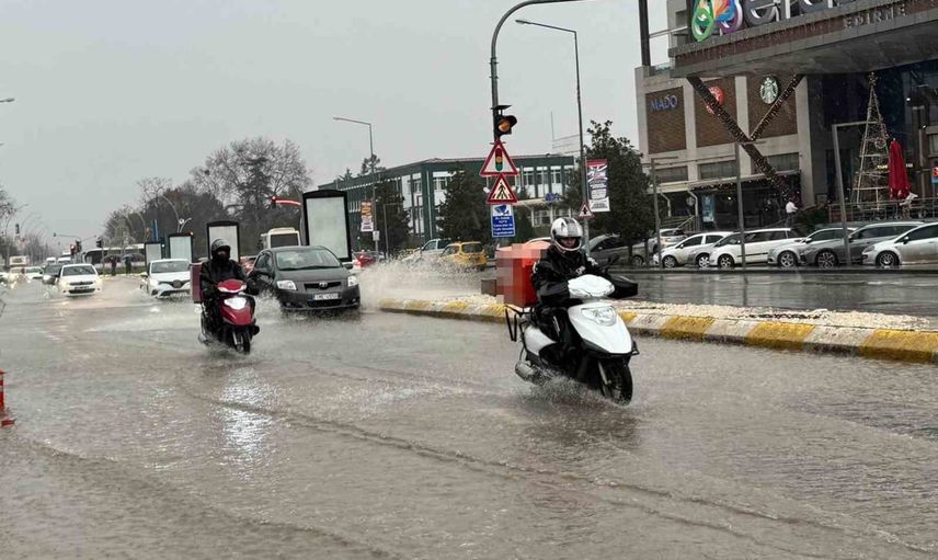 Edirne'de meydana gelen sağanak yağış sonrası bazı caddelerde su birikintileri oluştu ve bu durum trafiği olumsuz etkiledi.
