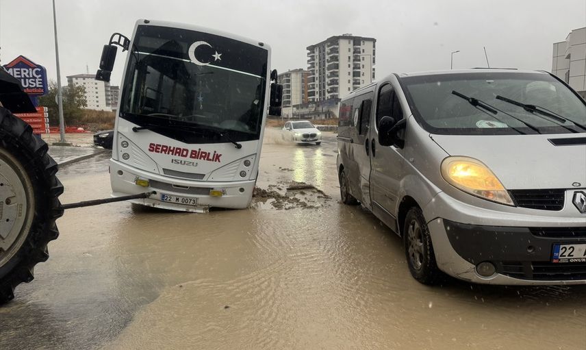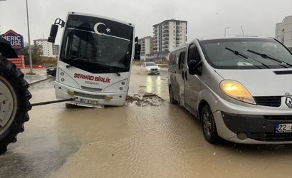 Edirne'de, son günlerde etkili olan şiddetli sağanak yağış nedeniyle yolda çökme olayı yaşandı. Bu durum, bir yolcu minibüsünün çukura girmesine ve aracın hasar görmesine yol açtı.