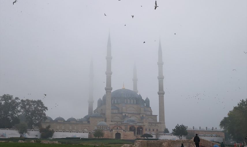 Şehrin tarihi yapıları arasında yer alan Selimiye Camisi, sisli havada muhteşem bir görüntü sundu. Meteoroloji Müdürlüğü yetkililerine göre, Edirne'deki hava sıcaklığı 12 derece olarak ölçüldü ve sisin öğle saatlerine doğru etkisini yitirerek yerini yağışlı havaya bırakması bekleniyor.