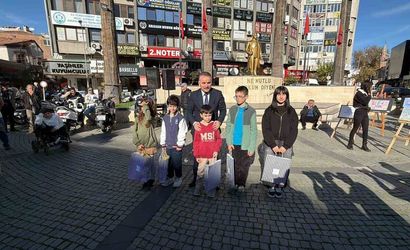 Yarışmada dereceye giren eserler, meydanda kurulan sergi alanında vatandaşların ilgisine sunuldu. Sergiyi gezen vatandaşlar, eserleri ilgiyle inceledi. Etkinlikte, yarışmada başarılı olan öğrencilere ödülleri, protokol üyeleri tarafından verildi.