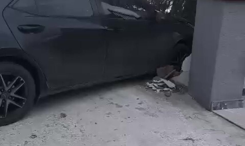 KOCAELİ'NİN DİLOVASI İLÇESİNDE FRENİ ÇEKİLMEDEN PARK EDİLEN OTOMOBİL, BİR EVİN BAHÇE DUVARINA ÇARPARAK DURABİLDİ. KAZA ANI GÜVENLİK KAMERASINA YANSIDI.