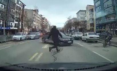 Atatürk Bulvarı'nda gerçekleşen bu olayda, park halindeki otomobilin hareket ettiğini gören başka bir sürücü, durumu fark ederek hemen harekete geçti.