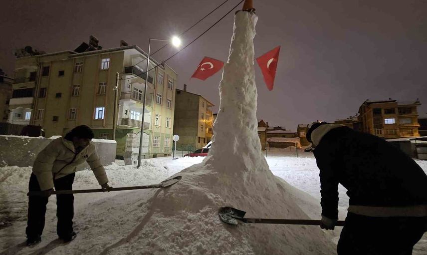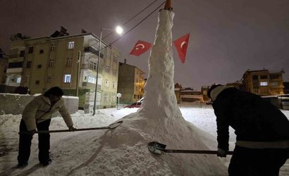 Kar yağışını fırsata çeviren 13 yaşındaki Beytullah Gezer ve 14 yaşındaki Arda Erulaş, ekip çalışmasıyla dev bir kardan adam inşa etti. Beytullah Gezer, "Kar, kömür, duba ve bayrak kullandık. Ekip çalışmasıyla yaptık. Yaklaşık 4,5 metre kadar oldu. Keyifle yaptık. Vatandaşlar yanımıza gelip ‘Nasıl yaptınız, çok uzun olmuş’ diyor. Bir saat içerisinde tamamladık. Gerçekten mükemmel bir iş çıkardık" şeklinde konuştu.
