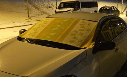 ELAZIĞ'DA VATANDAŞLAR, GECE SAATLERİNDE EKSİLERE DÜŞEN HAVA SICAKLIĞI NEDENİYLE ARAÇLARININ CAMLARINI KİLİM İLE KORUMAYA ÇALIŞIYOR.