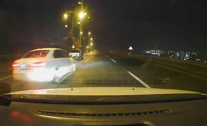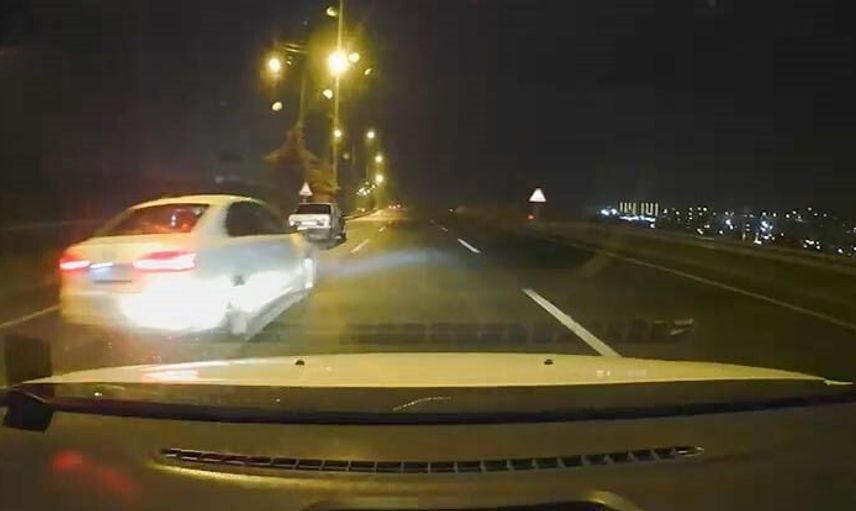 Bu tehlikeli sürüş, başka bir sürücünün araç içi kamerası tarafından kaydedildi. Hızla ilerleyen sürücü, bir süre sonra gözden kayboldu.