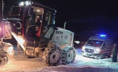 Aşağı Ovacık köyüne hasta almak amacıyla yola çıkan ambulans, yoğun kar ve buzlanma nedeniyle yoldan çıkarak mahsur kaldı.