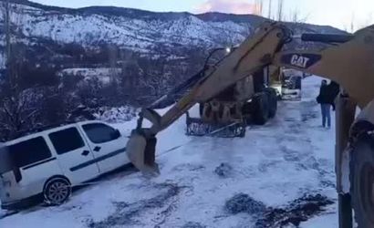 Elazığ'da Karda Mahsur Kalan Araç Kurtarıldı