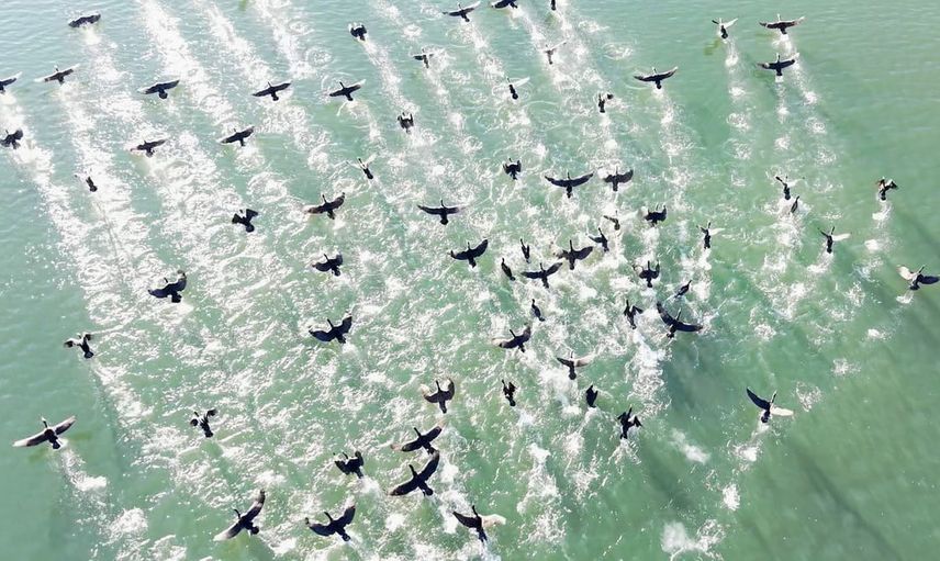 Cip Baraj Gölü üzerinde gerçekleştirilen dron çekimleri, kara batakların su üzerinde ilerleyip gökyüzüne yükseldiği anları kaydetti. Soğuk hava koşullarında, bu doğal güzellikler bir kartpostalı andıran manzaralar oluşturdu.