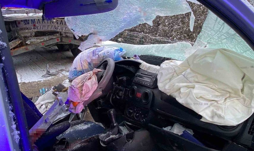 ELAZIĞ’DA BUZDAN DOLAYI KONTROLDEN ÇIKAN HAFİF TİCARİ ARAÇ, PARK HALİNDEKİ TIRA ARKADAN ÇARPTI. FECİ KAZADA HIZ KADRANI TAKILI KALIRKEN, KARI KOCA HAYATINI KAYBETTİ