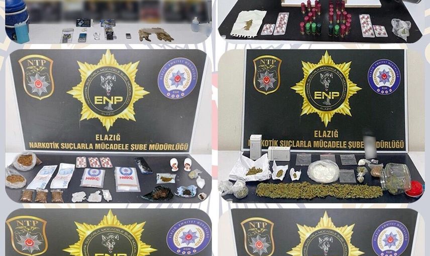 Elazığ Cumhuriyet Başsavcılığı’nın koordinasyonu ile İl Emniyet Müdürlüğü Narkotik Suçlarla Mücadele ve Asayiş Şube Müdürlüğü ekipleri, kent genelinde eş zamanlı olarak bir dizi operasyon gerçekleştirdi. Bu operasyonlarda, çeşitli uyuşturucu maddeler ve silahlar ele geçirildi.