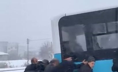 Dün başlayan kar yağışının birçok bölgede hayatı olumsuz etkilediği Elazığ’da, yolcuları taşıyan otobüs, yoğun kar yağışı yüzünden yolda kaldı. Durumu fark eden vatandaşlar, hemen harekete geçerek otobüsü arkadan itmeye çalıştılar ve başarılı bir şekilde kurtardılar.