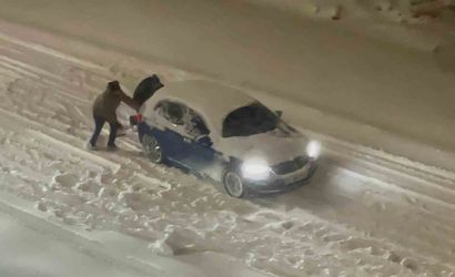 Yolda kalan araçların imdadına çevredeki vatandaşlar yetişti. El birliğiyle ittiği araçlar, kısa süre içinde bulundukları yerden çıkarıldı. Yardım edenler arasında kadınlar da dikkat çekti.