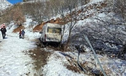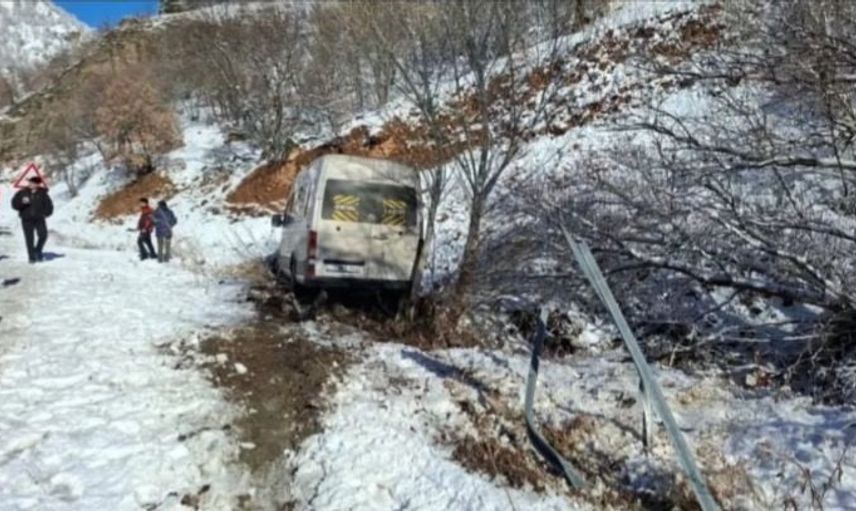 Elazığsporlu taraftarları taşıyan bir minibüs, kar ve buzlanmanın etkisiyle şarampole kaydı. Neyse ki kazada yaralanan kimse yoktu ve facianın eşiğinden dönüldü.