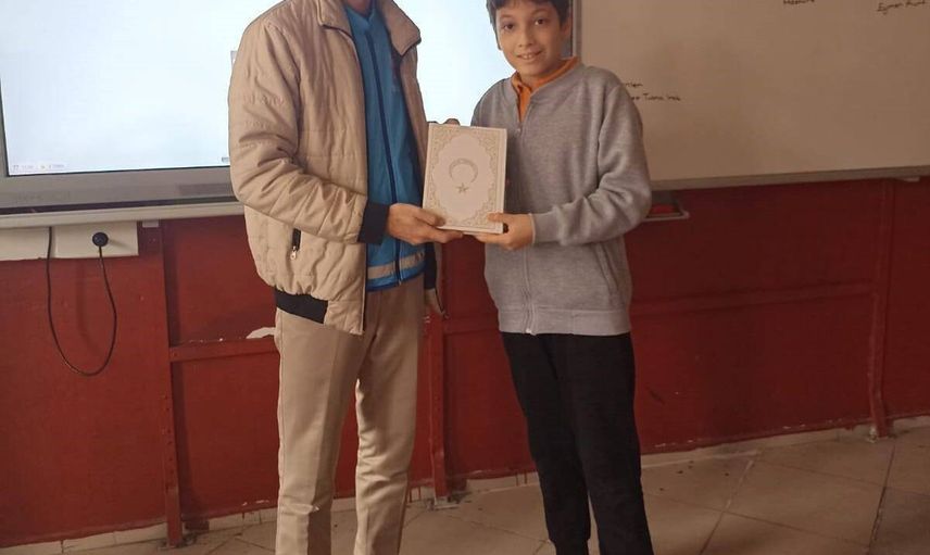 Etkinlikte, İlçe Müftülüğü görevlileri öğrencilere Kur’an-ı Kerim’in anlamı ve önemi üzerine kısa bir bilgilendirme sunarak, hediyelerini takdim etti.