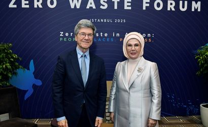 Cumhurbaşkanı Recep Tayyip Erdoğan'ın eşi ve Sıfır Atık Vakfı Onursal Başkanı Emine Erdoğan, İstanbul'da düzenlenen Uluslararası Sıfır Atık Forumu kapsamında, Birleşmiş Milletler (BM) Sürdürülebilir Kalkınma Çözümleri Ağı Başkanı Prof. Jeffrey Sachs ile bir araya geldi.