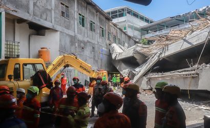 Sidoarjo kasabasında tadilat halindeki bir yatılı okul binasının çökmesi sonucunda, enkaz altında olduğu düşünülen 38 kişi için çalışmalar sürdürülüyor. Açıklamada, çöken binanın enkazından 102 kişinin kurtarılmış olduğu, bunlardan 91'inin kendi çabalarıyla dışarı çıkmayı başardığı, 11'inin ise arama kurtarma ekipleri tarafından kurtarıldığı belirtildi.