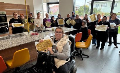 Atölye sırasında, engelli bireylerin anneleri, gıdayla temasa uygun balmumu kumaşlar kullanarak çevre dostu ürünler üretme becerisi kazandı. Mutfak Becerileri eğitmeni, balmumu kumaşın kullanım alanları hakkında bilgi verirken, Tasarım Atölyesi eğitmeni de katılımcılara tasarım aşamasında rehberlik etti.