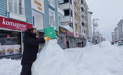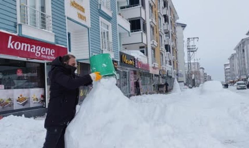 Günlerdir süregelen kar yağışı, şehir merkezinde kar kalınlığının 70 santimetreyi geçmesine yol açtı. Bu durum birçok mahallenin yollarının kapanmasına neden oldu. Dışarı çıkmakta zorlanan vatandaşlar, esnafın da durgun bir gün geçirmesine sebep oldu. Ancak esnaf, havanın tadını çıkarmayı tercih ederek kardan adam yapmaya karar verdi.