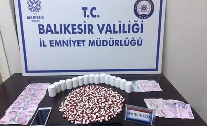 Erdek İlçe Emniyet Müdürlüğü’ne bağlı ekiplerin asayiş ve güvenliği sağlamak amacıyla yürüttüğü çalışmalar neticesinde, Otogar civarında durdurulan bir araçta üç şüpheli tespit edildi. M.T. (20), E.K. (18) ve E.K. (19) isimli kişilerin üzerinde ve araçta yapılan aramalarda belirtilen hapların yanı sıra, suçtan elde edildiği değerlendirilen önemli miktarda nakit para ile üç adet cep telefonuna el konuldu.