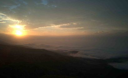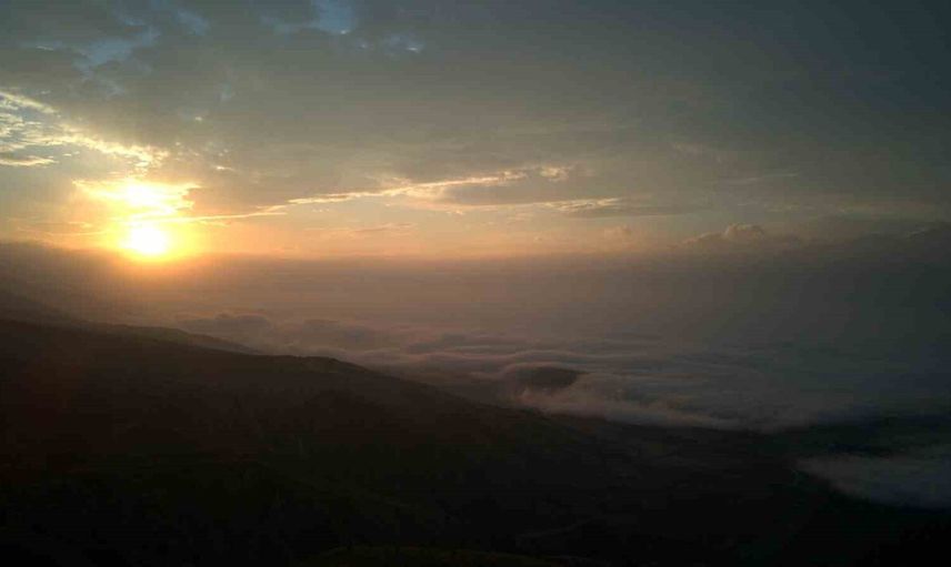 Erzincan’da gün doğumunun gelişiyle birlikte ovayı etkisi altına alan yoğun sis, Keşiş Dağı’nın zirvesinden bakıldığında adeta bir kartpostal görüntüsü oluşturdu.