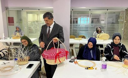 Başkan Aksun, kadınların el sanatları ve yabancı dil alanındaki yeteneklerini geliştirerek, onların bireysel yetkinliklerini artırmayı hedefleyen kurslar hakkında bilgi almak üzere usta öğreticiler ve kursiyerlerle bir araya geldi.