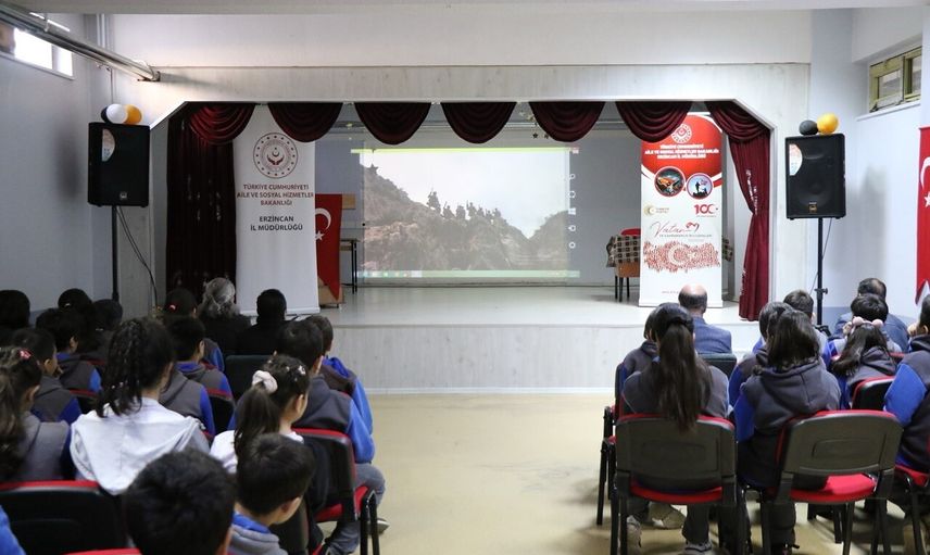 Erzincan Aile ve Sosyal Hizmetler İl Müdürlüğü tarafından gerçekleştirilen Vatan ve Kahramanlık Buluşmaları etkinliği, şehit yakınlarını Erzincan Binali Yıldırım Ortaokulu öğrencileriyle buluşturdu.