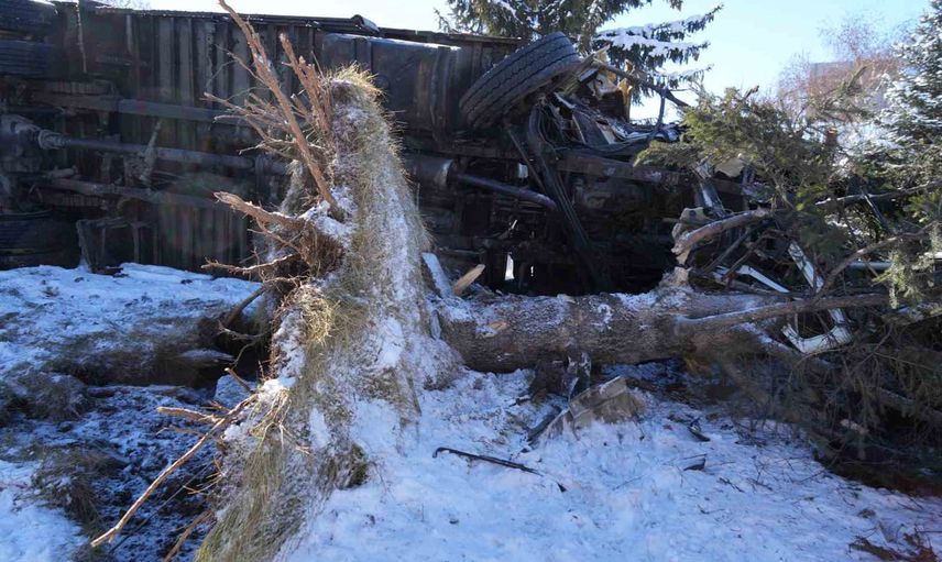 ERZURUM’DA MEYDANA GELEN KAZADA BİR KAMYON HIZINI ALAMAYARAK ORTA REFÜJÜ AÇTI VE TAKLA ATTI.