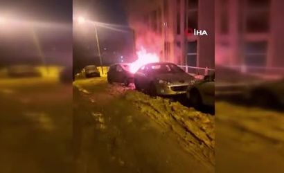 Erzurum’un Yakutiye ilçesinde bulunan Çaykara Caddesi’nde, öğretmenevi arkasında park etmiş bir otomobil, henüz belirlenemeyen bir sebepten ötürü alev aldı.