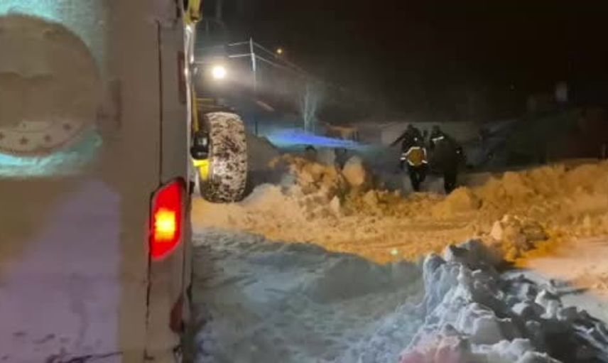 Köy yolunun karla kaplanmış olması nedeniyle, sağlık ekipleri karla mücadele ekiplerinden destek talep etti.