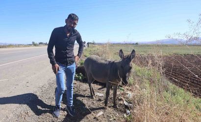 Hatay'da yaşanan bir olayda, yolun karşısına geçmek isteyen bir eşek, bir aracın çarpması sonucu telef oldu. Olayın ardından, eşeğin sıpası annesinin başında saatlerce bekleyerek çevredeki insanları duygusal anlar yaşattı.