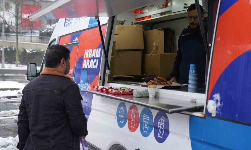 Esenler Belediyesi Halkla İlişkiler ekipleri, kar yağışının etkili olduğu saatlerde belirlenen yoğun bölgelerde ESTİM İkram Aracı ile 5 bin kişiye ulaştı. Bu çalışmalar, İstanbul Valiliği ile koordinasyon içerisinde yürütüldü. Sıcak ve soğuk ikramlarla, kışın zorlu koşullarında dışarıda kalan vatandaşlara destek olunmaya çalışıldı.