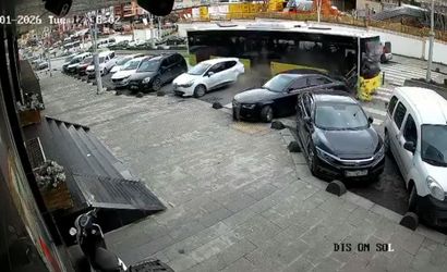 Kaza, önceki gün saat 12.30 sularında yaşandı. M.E. isimli sürücünün yönettiği otobüs, yolun sağ tarafında park eden iki otomobile çarparak durdu. Kaza anı bir iş yerinin güvenlik kamerası tarafından kaydedildi. Görüntülerde, otobüsün seyir halindeyken nasıl park halindeki araçlara çarptığı net bir şekilde görülebiliyor.