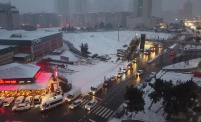 İSTANBUL'DA GECE SAATLERİNDE ETKİSİNİ ARTIRAN KAR YAĞIŞI ESENYURT'U BEYAZA BÜRÜDÜ. KARLA KAPLANAN ESENYURT HAVADAN GÖRÜNTÜLENDİ.