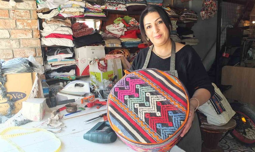 Hasgül, artık halı ve kilimlerden yapmış olduğu yastık ve kırlentlerin yanı sıra rengarenk puflar da üretmeye başladı. 1 çocuk annesi olan Hasgül, Kavakdibi Caddesi'ndeki atölyesinde eski halı ve kilimlerin kullanılabilir parçalarını ayırarak farklı ürünler yaratıyor.