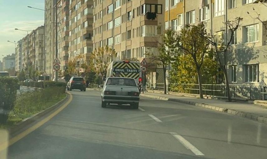 Araç, trafikte seyrederken bir okul servisini sıkıştırma anı da amatör kamera ile kaydedildi. Bu durum, olayın ne denli tehlikeli hale geldiğini gözler önüne serdi.