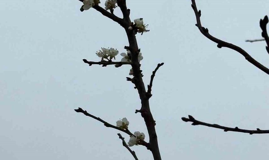Güneş ışığından kaynaklandığı düşünülen bu durum, mevsim normlarına aykırı olarak kayısı ağacının dallarında oluşan çiçeklerle dikkat çekti. Ancak, Aralık ayındaki soğuk havalar, muhtemel bir kırağı veya dona yol açma riski taşıyor.