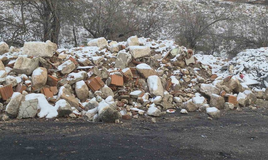 Boş arazide oluşan tepeler, onca kamyon tarafından bırakıldığı tahmin edilen lastik, moloz ve çeşitli atıkları içeriyor. Sakinler, bu durumun bir an önce düzeltilmesi ve bölgelerinin temizlenmesi için yetkililere çağrıda bulunuyor.