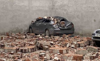 ESKİŞEHİR'DE FIRTINA SEBEBİYLE METRUK BİNANIN ÇATI DUVARININ OTOPARKA DEVRİLİRKEN, 6 ARAÇTA MADDİ HASAR OLUŞTU. ÇEVRE SAKİNLERİ, DUVARIN DEVRİLMESİ İLE BİRLİKTE DUYULAN GÜRÜLTÜYÜ PATLAMA SESİ ZANNETTİ.