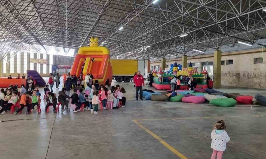 Eskişehir'in Emek Mahallesi kapalı pazar yerinde, Yabancılara Yönelik Şartlı Eğitim Yardımı (YŞEY) Projesi'nin önemli bir bileşeni olan "Çocuk Dostu Alan Tırı" faaliyete başladı.